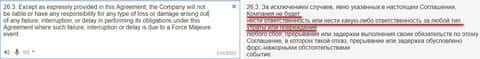 Дальше договор становится еще интересней и точно выражает компанию АИнвестменс как мошенническую организацию. Они четко прописали в договоре, что контора не несет ответственность перед клиентом за убытки, которые он понесет по вине компании. Они все списывают на какие-то форс-мажорные обстоятельства, а туда прописать можно все что угодно. Так что такой размытый договор, если подписать, то можно остаться ни с чем и не докажете потом, что у компании на это не было непредвиденных причин.