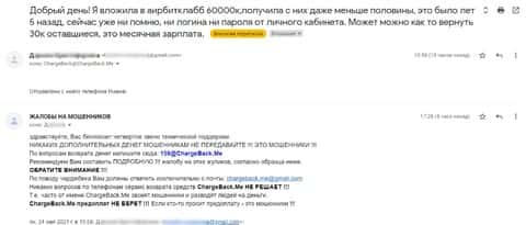 В данном разделе предлагаем увидеть информационный материал в виде жалобы на мошенническую контору Аир Бит Клуб, которая не вывела клиентке деньги со счета.