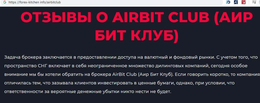 - Негативный отзыв от форекс игрока в сторону обманщиков из форекс кухни AirBit Club
