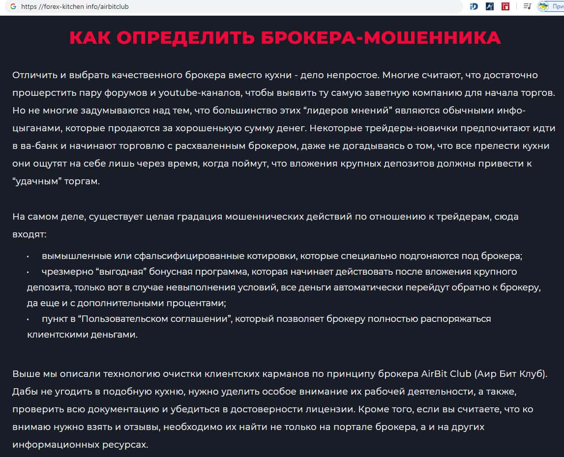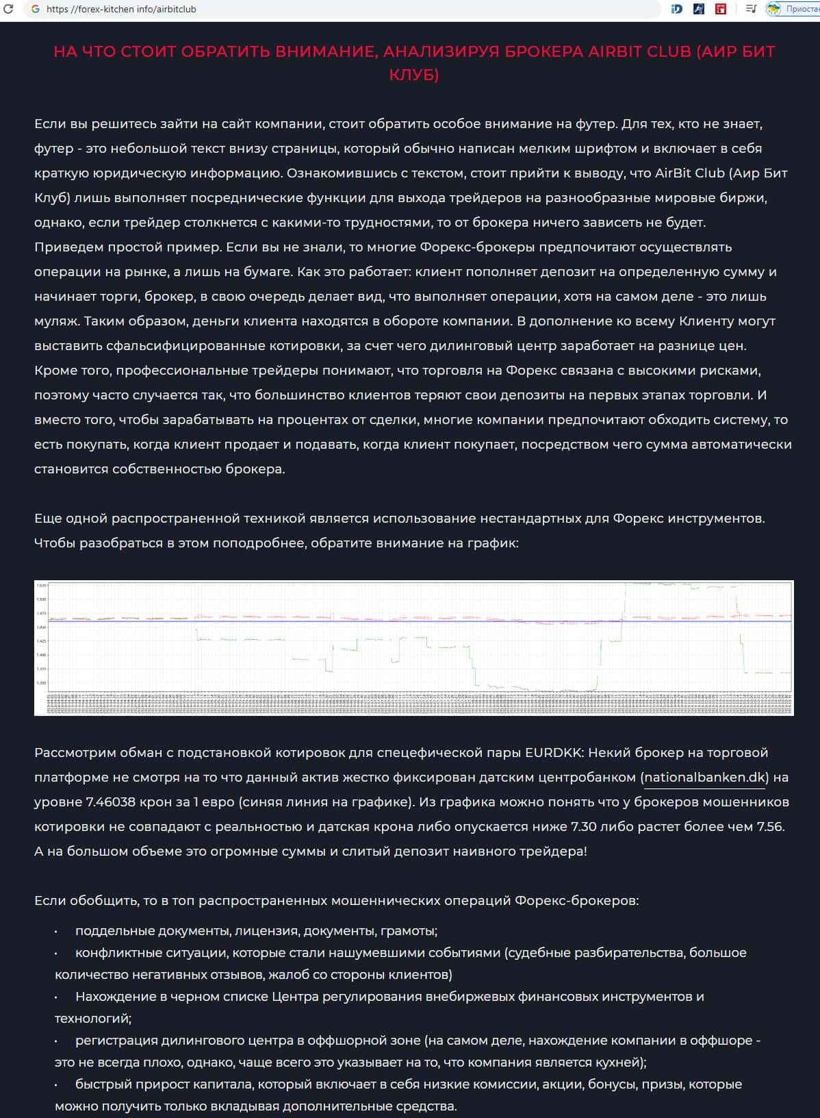 - Уважаемый интернет-сайт forex-kitchen info высказал профессиональную позицию о мошеннике-дилере Аир Бит Клуб