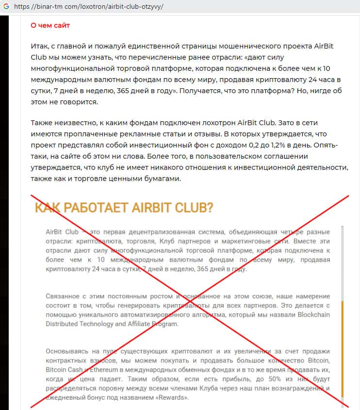 - Не вступайте в надувательский клуб мошеннической форекс организации AirBit Club
