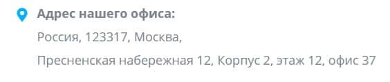 Россия, 123317, Москва, Пресненская набережная 12, Корпус 2, этаж 12, офис 37