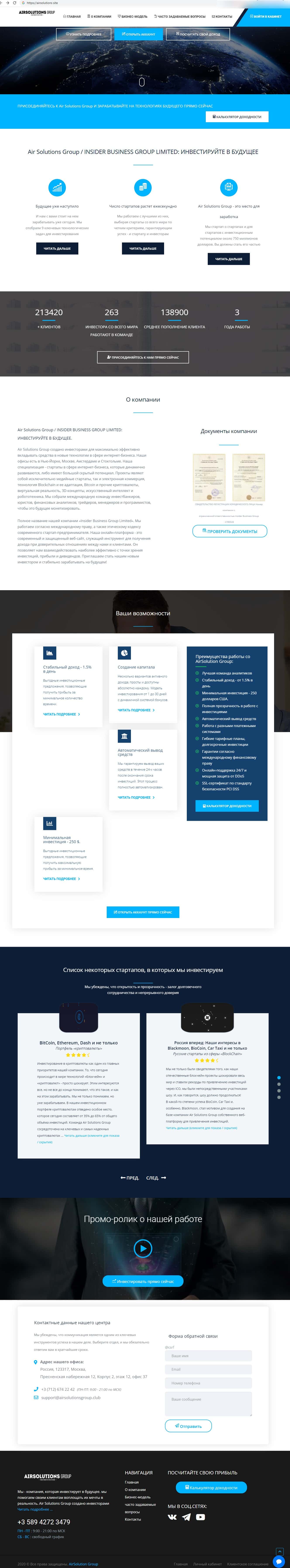 - Главная страница мошеннической хайп-компании AirSolution Site