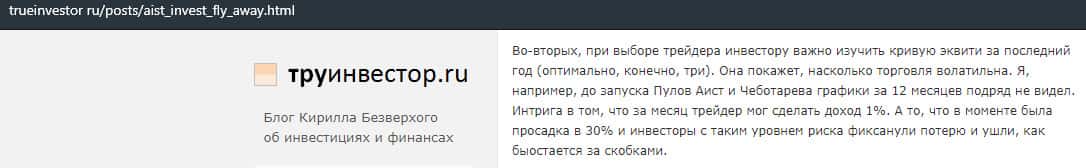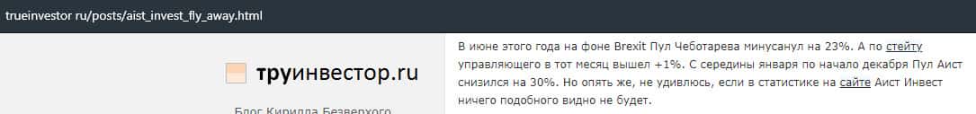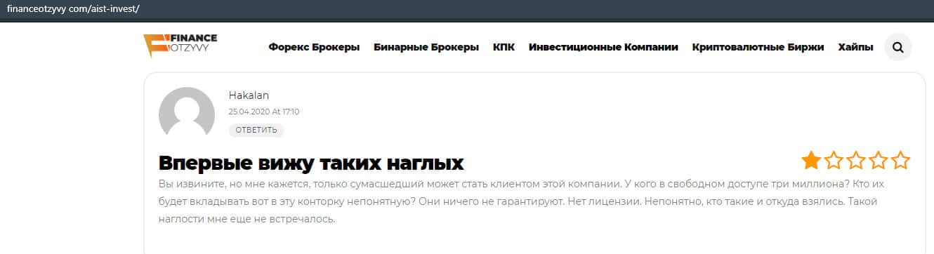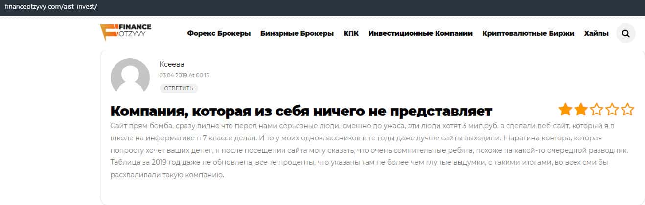 Информация о псевдо-конторе AistInvest Ru расположена в одной из статей интернета
