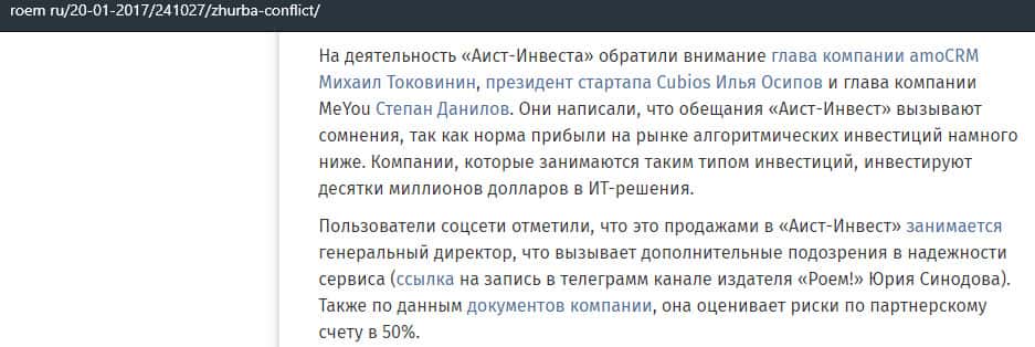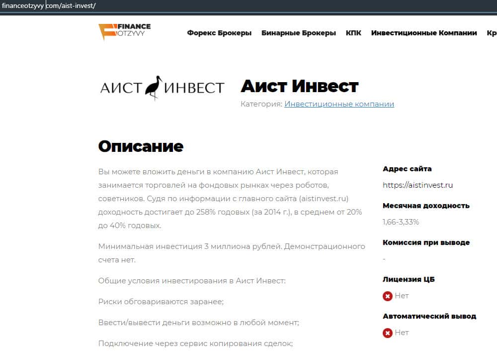 - Информация о псевдо-конторе AistInvest Ru расположена в одной из статей интернета