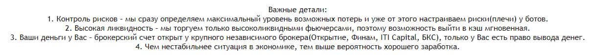 Также стоит учесть, что мошенническая организация AistInvest Ru в процессе управление деньгами клиентов использует торговых роботов, которые якобы настроены на прибыльную деятельность. Но следует понимать, что любое изменение на рынке робота просто сольет, поэтому не стоит верить ни статистическим данным ни обещаниям менеджеров.