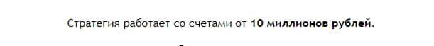 Шулерская контора Аист Инвест работает по-крупному, поэтому не приемлет инвестиций меньше 10 миллиона рублей. Они обосновывают такую цифру якобы своей стратегией, которая приносит огромные прибыли. Конечно же это выступает в качестве обычной приманки и нет никакого реального подтверждения что все это реально работает.