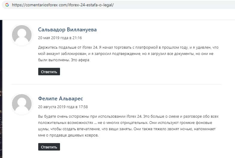 Ссылки на источники информации о мошенниках iForex 24 которые соскамились
