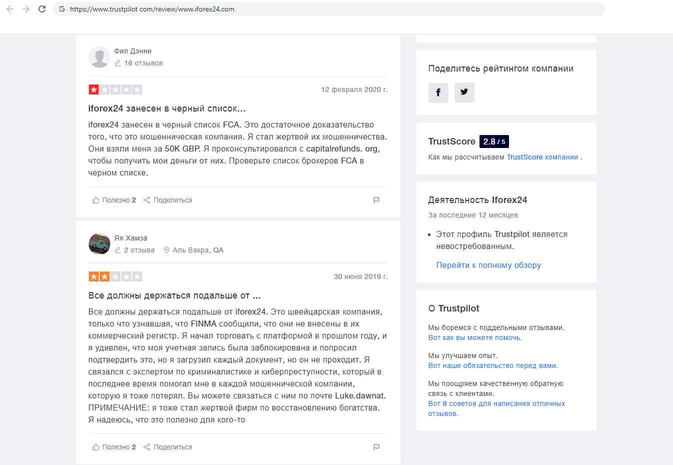 trustpilot com - сайт с отзывами о кидалах iForex 24
