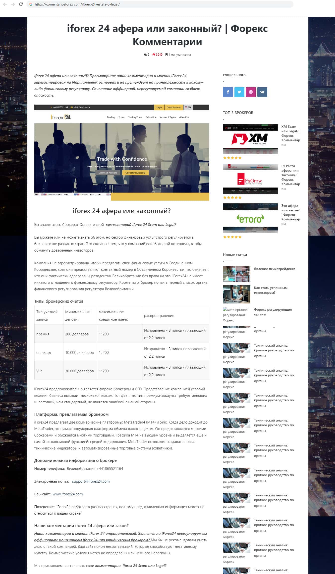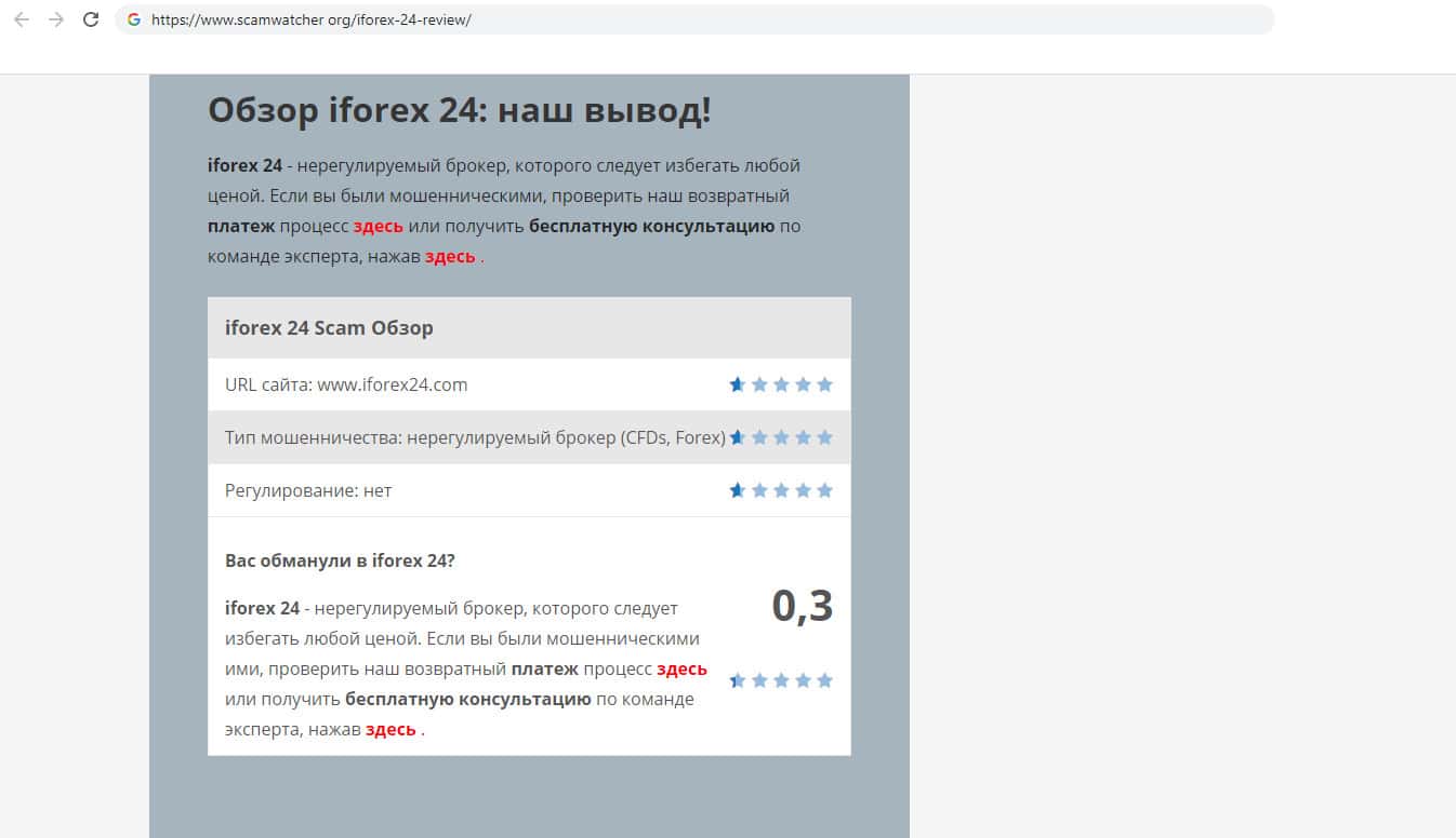 Обзоры бывшего сайта слившихся махинаторов iForex 24 другими интернет ресурсами