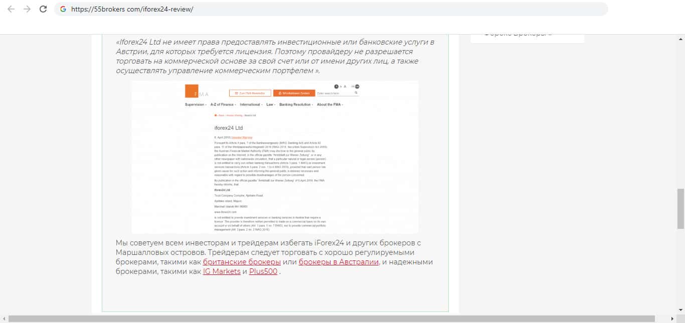 55brokers com - интернет ресурс с информацией о жуликах iForex 24