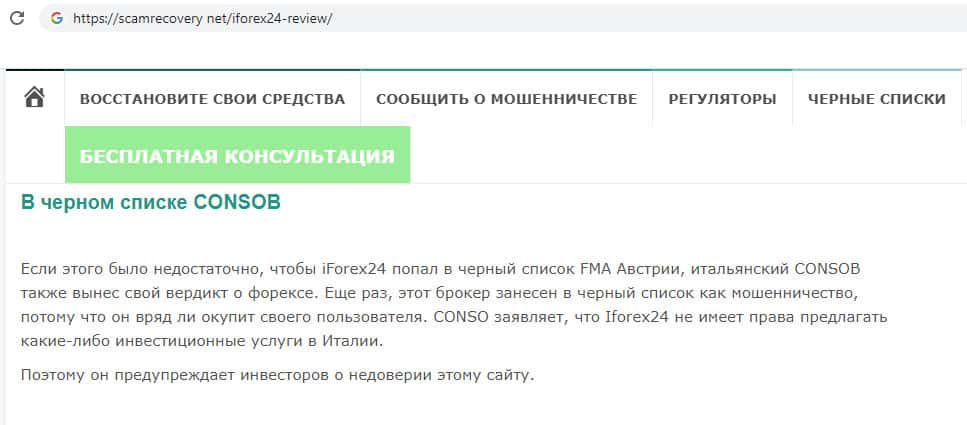 Недоконтора Ай Форекс 24 находилась в чёрном списке