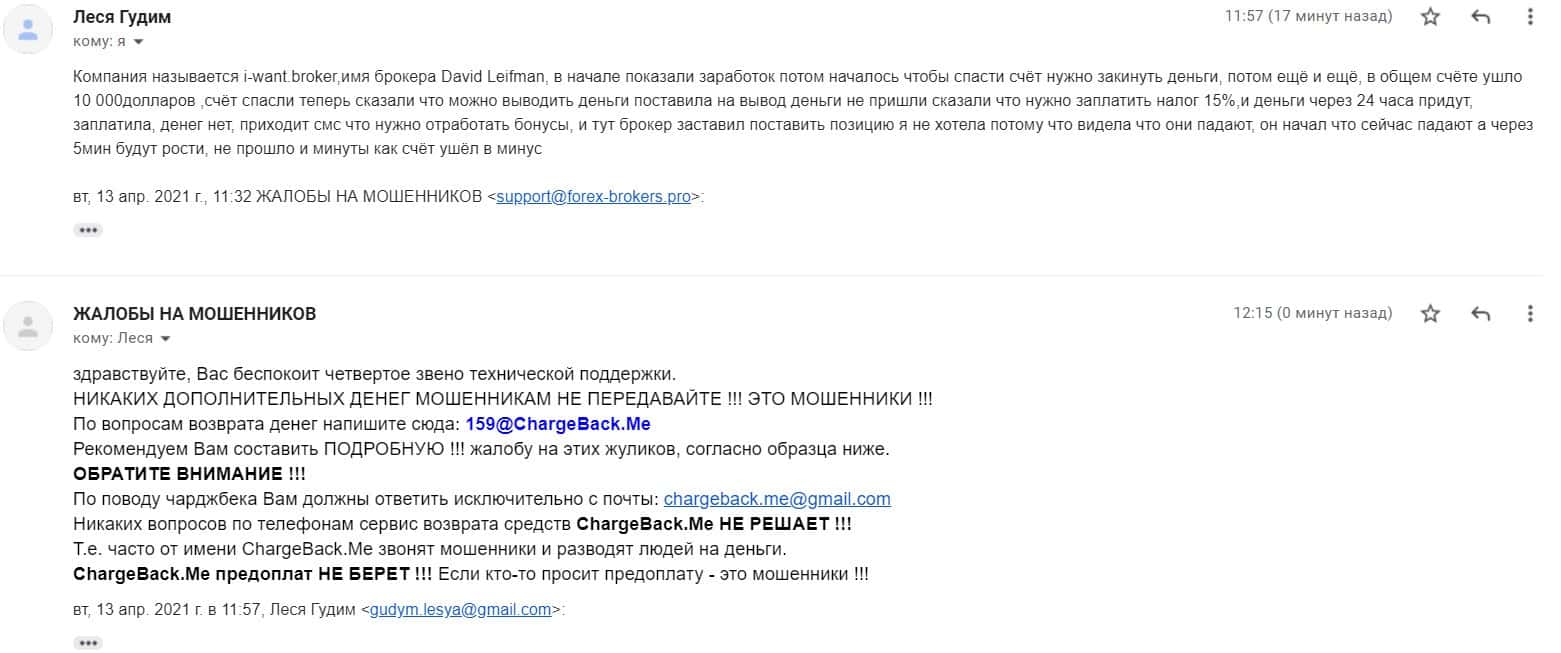- Жалоба на шулеров Ай Вонт Брокер, которые кинули клиентку на 10 000 $