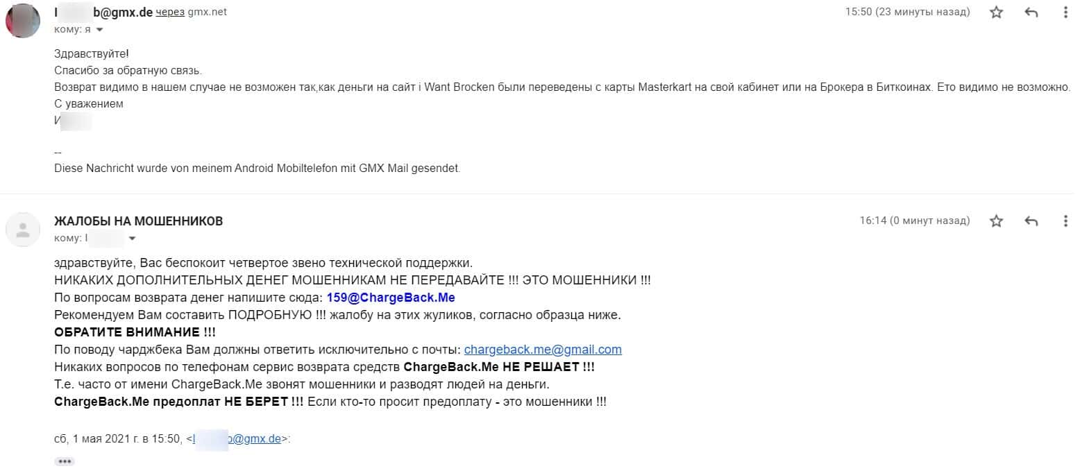Что касается попытки вернуть свои деньги от МОШЕННИКОВ Ай Вонт Брокер - напишите письмо на мыло: [email protected]