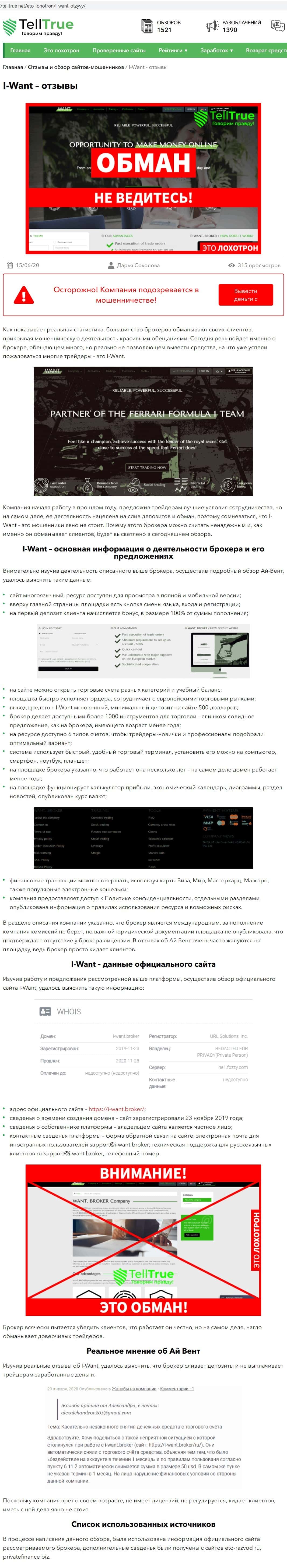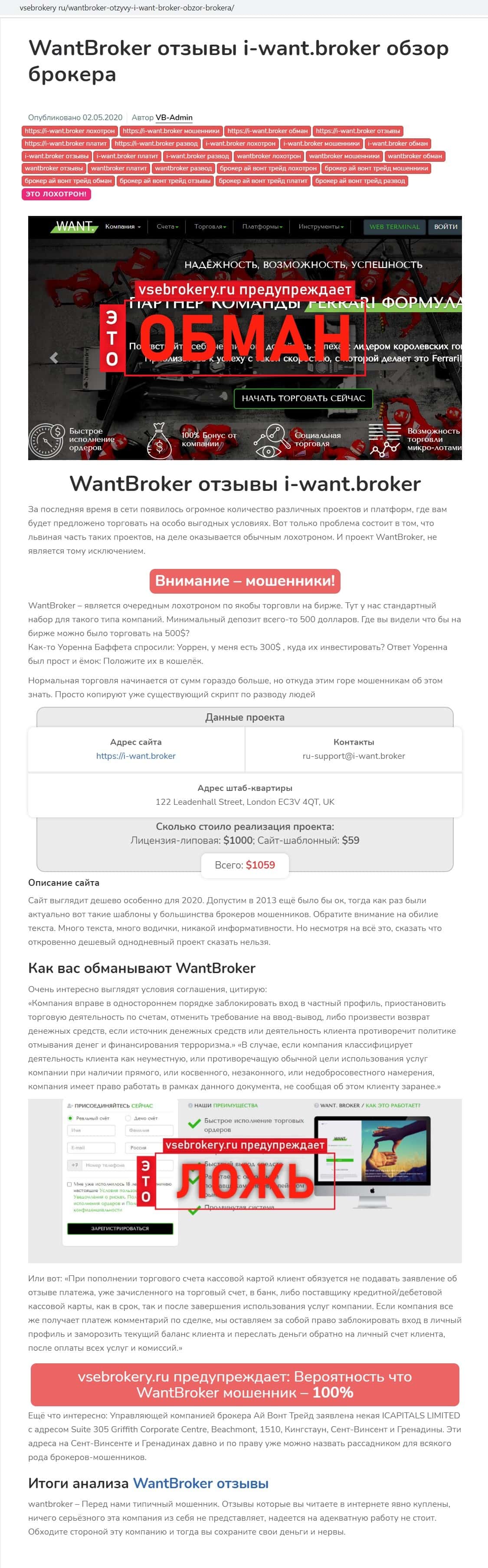 Обзорные статьи о брокере Ай Вонт Брокер, разоблачающие его