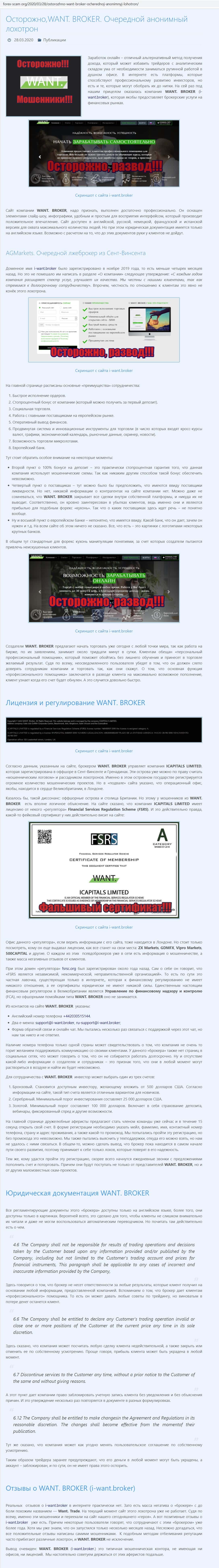 Статья на сайте forex-scam org описывает, какими схемами развода пользуются мошенники Ай Вонт Брокер, а также говорит, что это очередной анонимный лохотрон.
