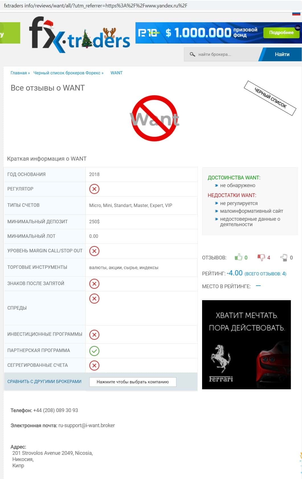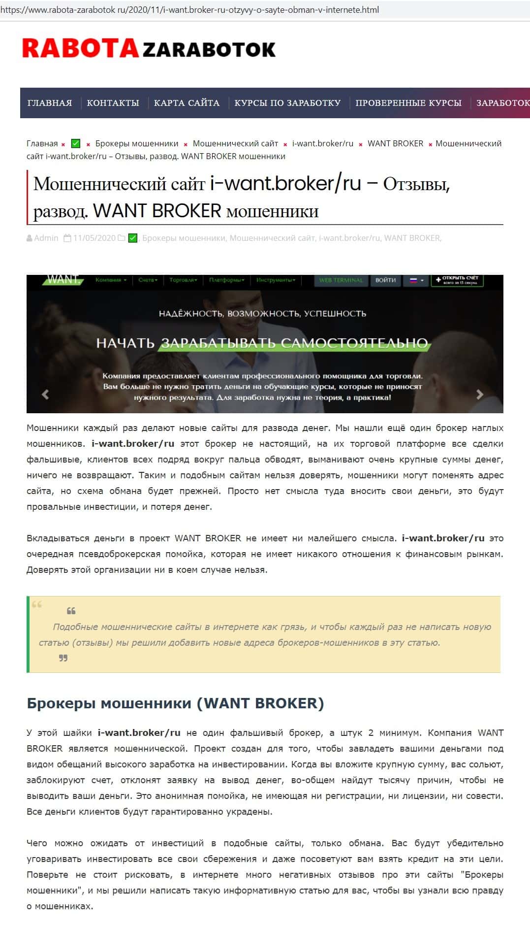 - Обзорные статьи о брокере Ай Вонт Брокер, разоблачающие его