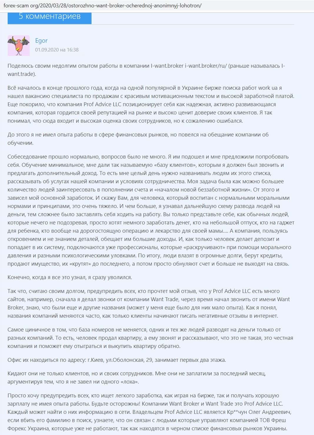 - Отзывы о псевдоброкере Ай Вонт Брокер от пользователей