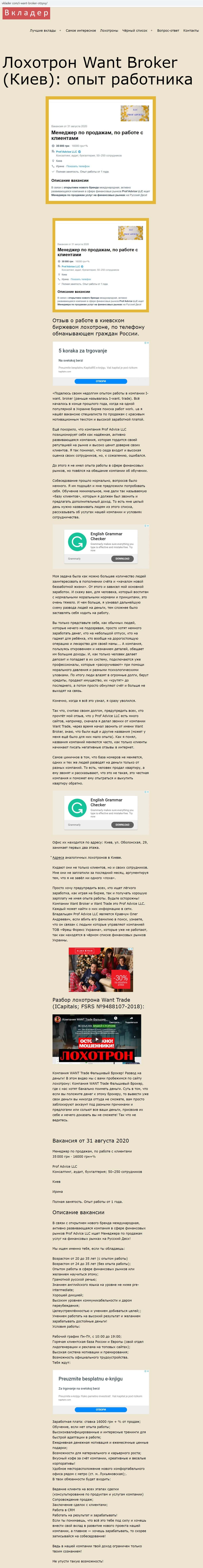На сайте vklader com опубликовали сообщение бывшего работника I-Want Broker, который рассказал, как обманывают в этой шарашке, а также выложили скрины вакансий о работе.