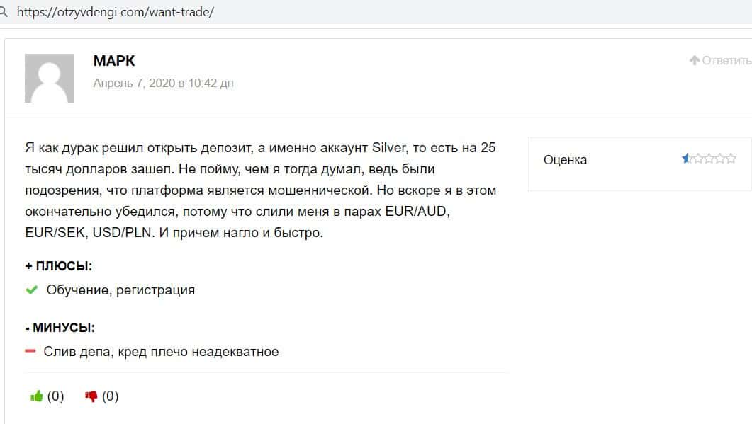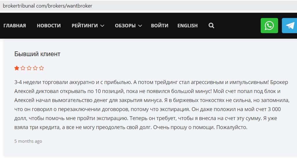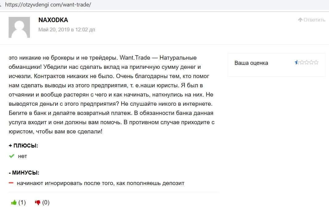 Бывший клиент конторы Ай Вонт Брокер рассказал, что мошенники сначала уговаривают сделать большой депозит, а потом игнорируют, когда клиент хочет вывести свои средства.