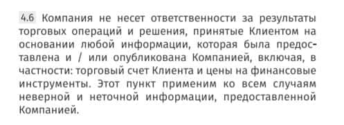 Пункт 4.6 клиентского соглашения конторы Ай Вонт Брокер говорит о том, что брокер не несет ответственности за решения, принимаемые клиентом и за результаты операций.