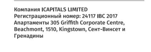 Юридическим лицом, выступающим от имени конторы I-Want Broker, является организация ICAPITALS LIMITED. Эта информация имеется в их клиентском соглашении.
