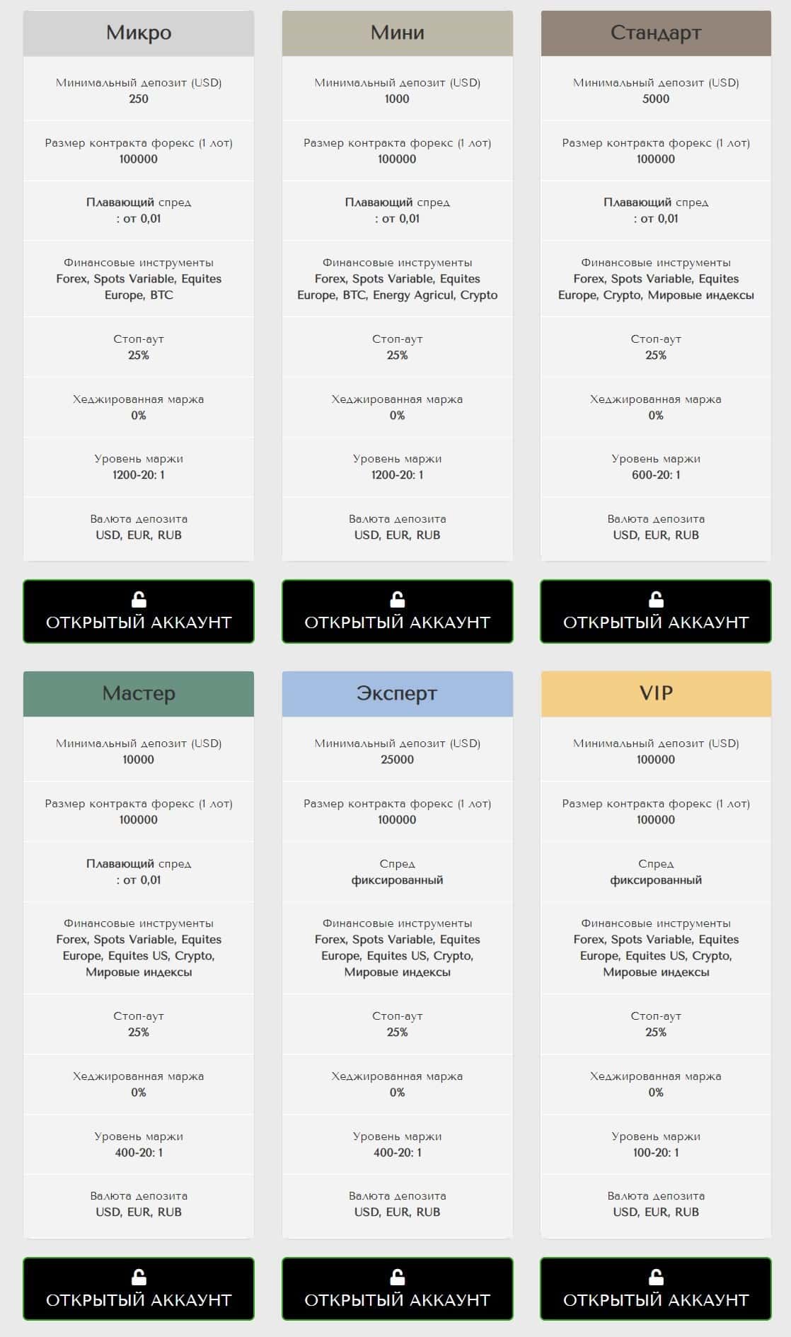 Если посмотреть на типы счетов брокерской компании I-Want Broker, то становится понятно, что это лохотрон, так как аферисты предлагают торговать от суммы 250 долларов.