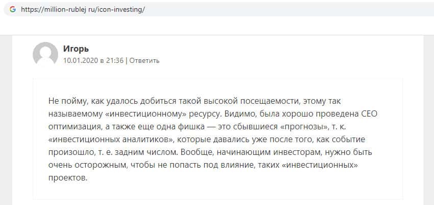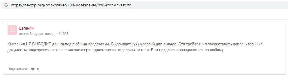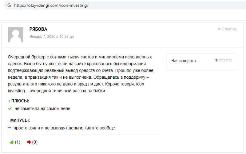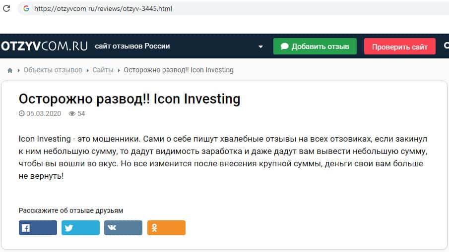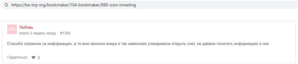 - Аферисты IconInvesting создают сайты с отзывами о себе