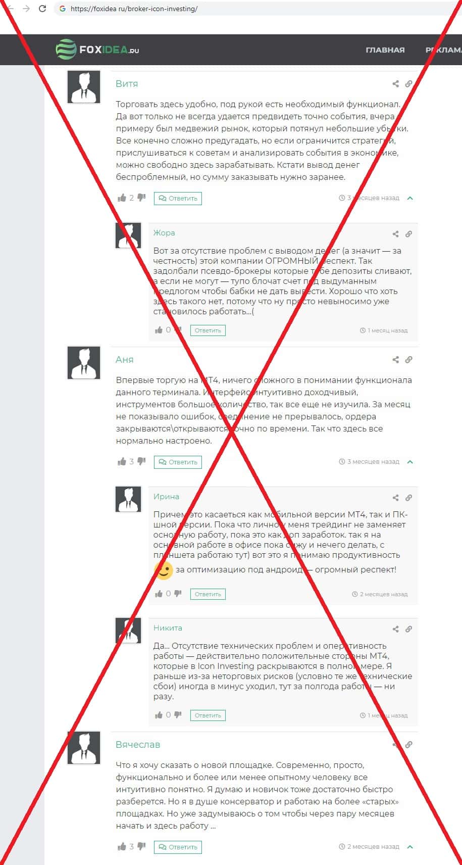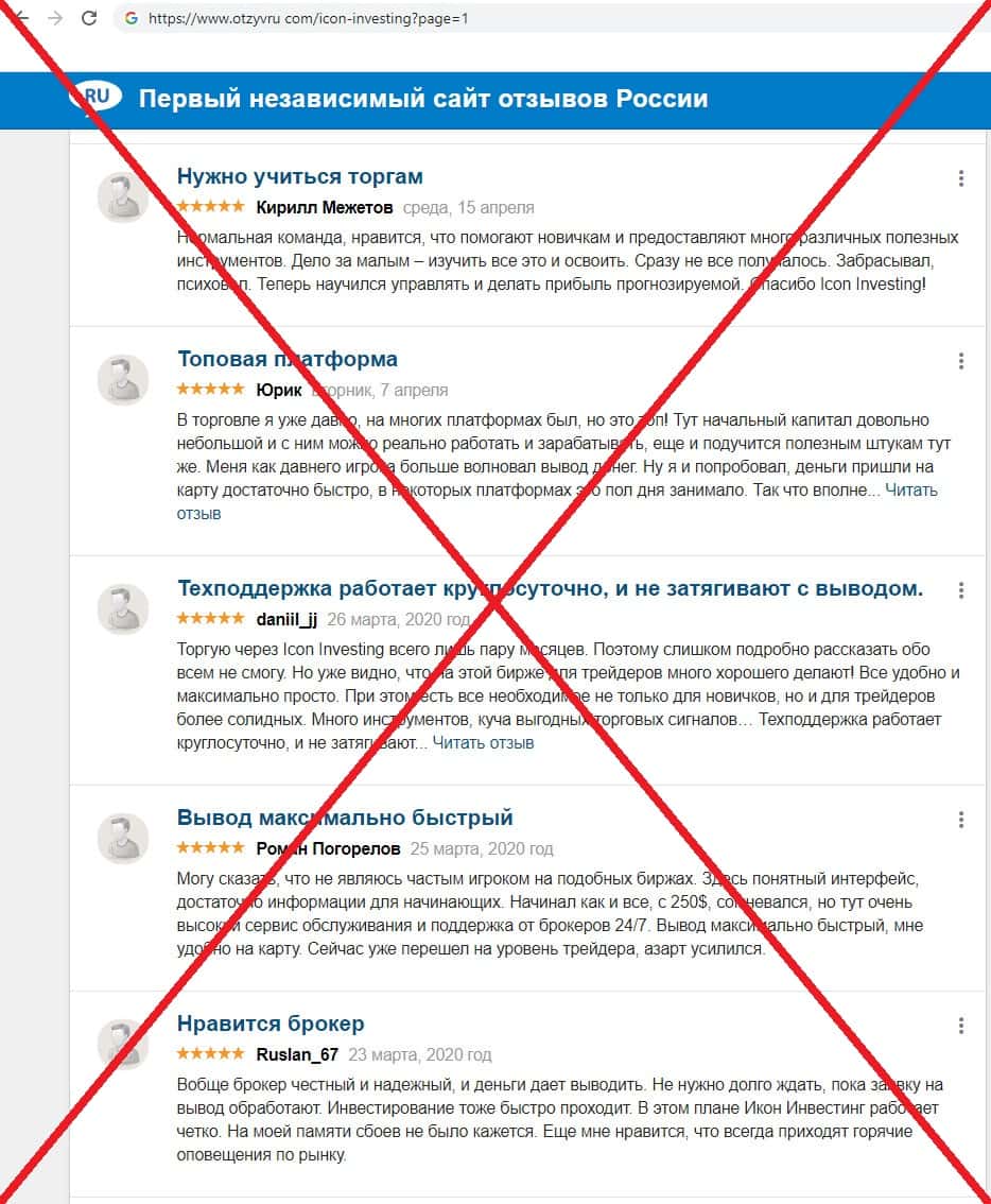 - Мошенники IconInvesting публикуют заказные отзывы о себе