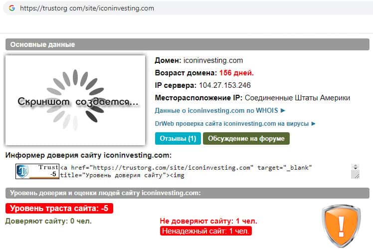 Мы проверили сайт компании жуликов Айкон Инвестинг через интернет ресурс "Доверие в Сети", который показал, что компания обвиняется в мошенничестве, так же оказалось, что компания существует менее полугода, и все отзывы, в которых якобы пользователи утверждают, что работают с компанией несколько лет можно даже не читать.