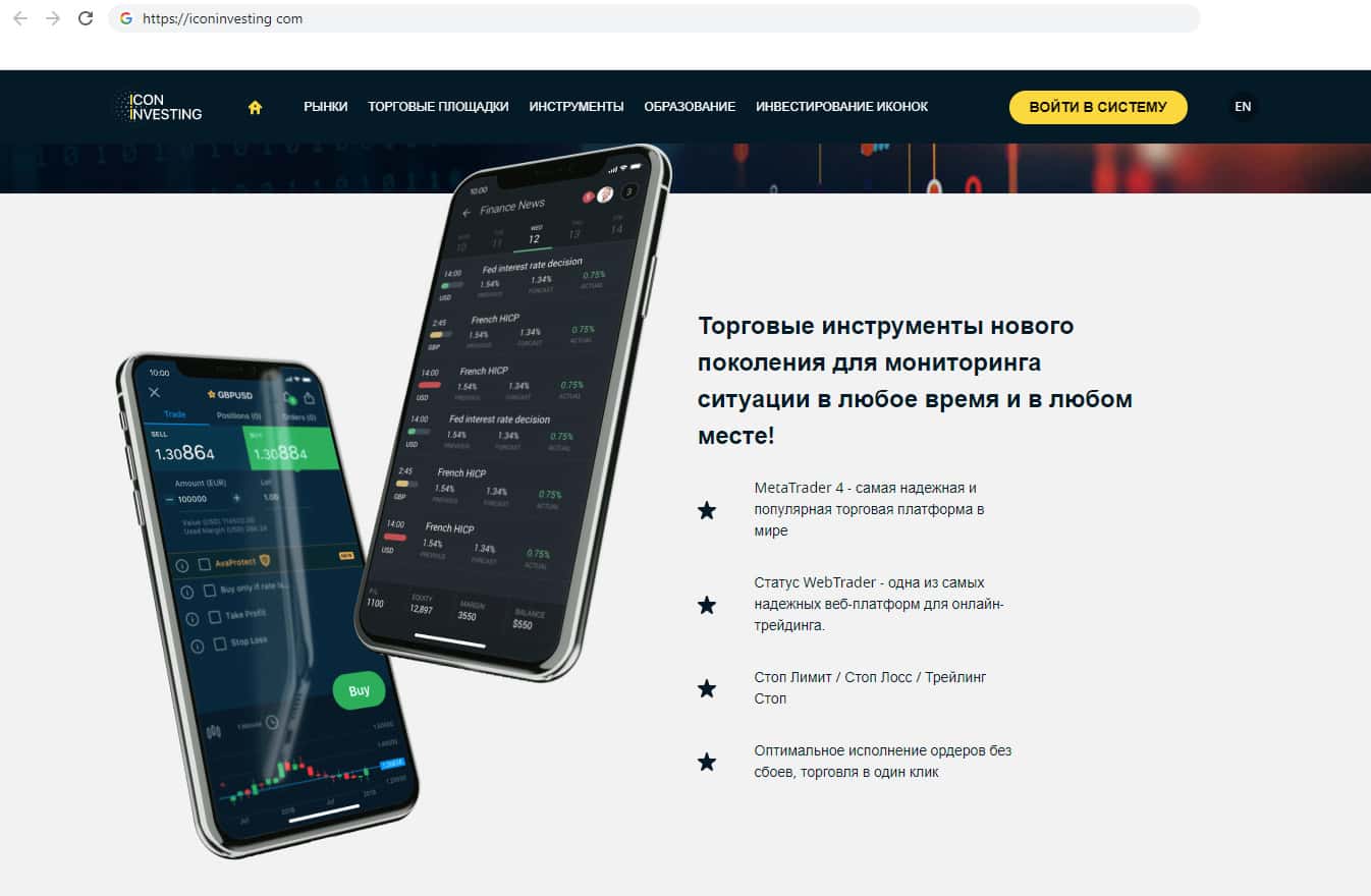 iconinvesting com - главный интернет ресурс компании мошенников IconInvesting