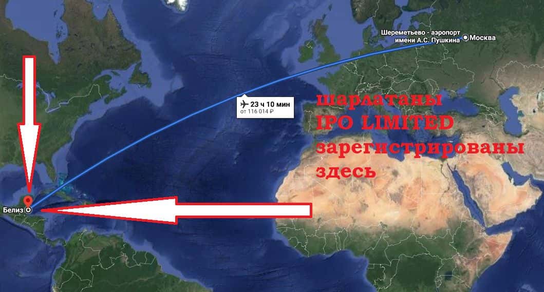Уже одно то, что для регистрации проходимцы АйПиО Лимитед выбрали труднодосягаемый Белиз, говорит об их махинаторской сущности. Не ввязывайтесь в этот фуфлогон!