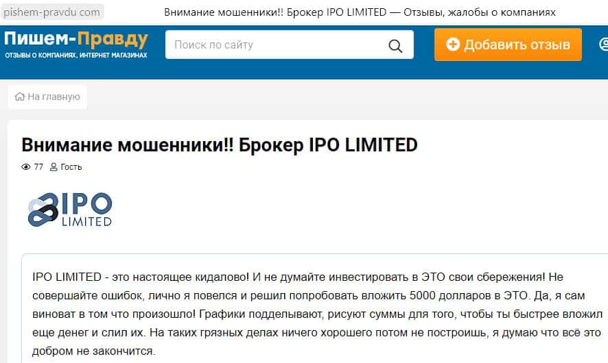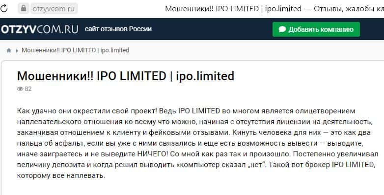- Обзоры, найденные в сети интернет о шаромыжниках IPO Limited