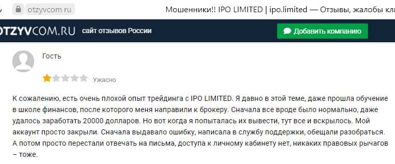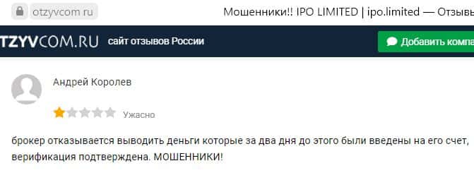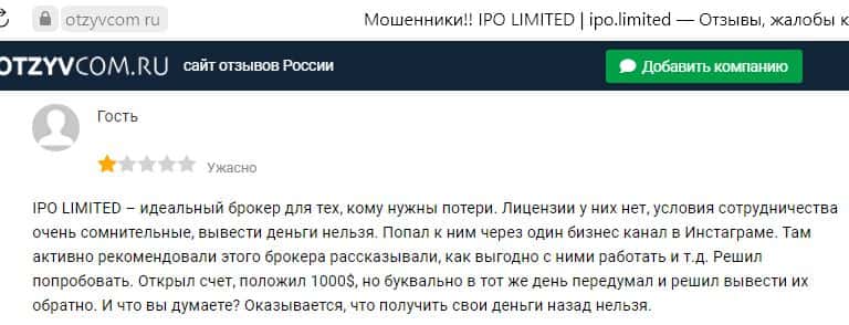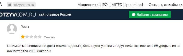 Какие отзывы остаются после взаимодействия с жуликами АйПиО Лимитед