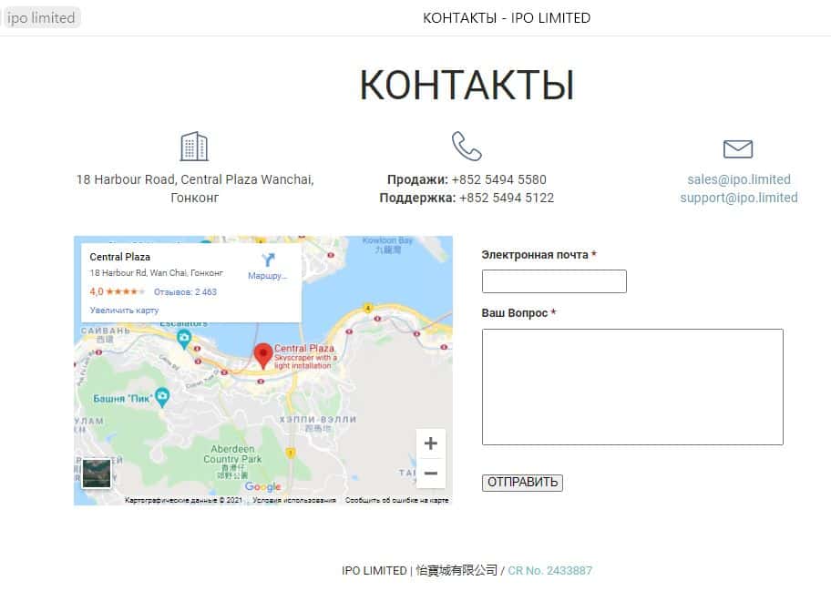- Какая контактная информация есть у шулеров АйПиО Лимитед?