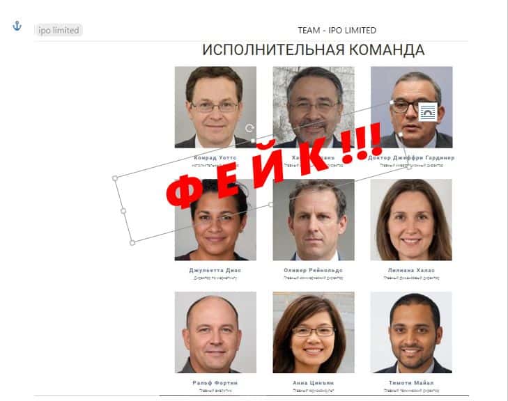 Мошенники даже нарисовали исполнительную команду АйПиО Лимитед. Но следует ли доверять этой информации, если во всем другом аферисты врут?