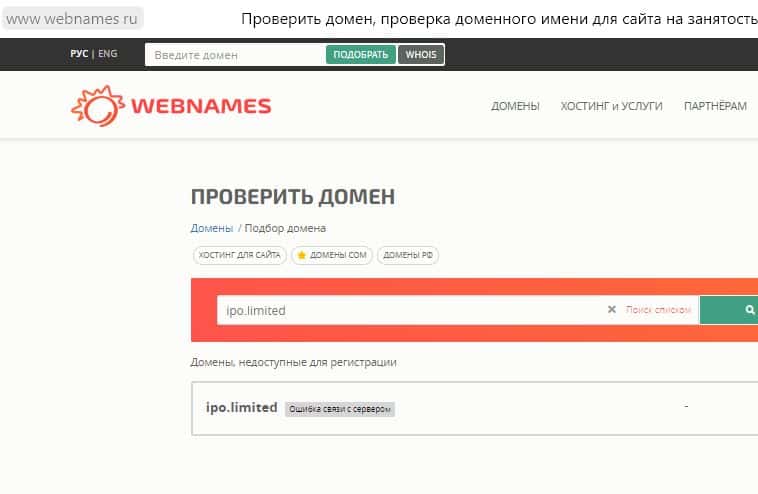 Мы попробовали заглянуть поглубже, проверить, кем же занят домен ipo limited. Но и там ничего узнать не удалось. Сервис все время выдает ошибку связи.
