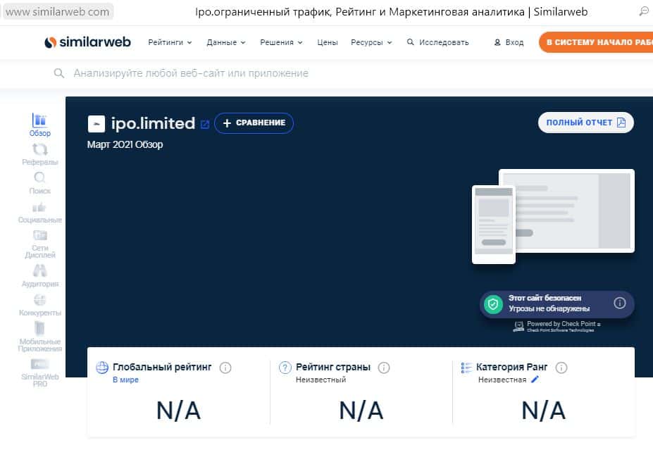 SimilarWeb не может определить источники трафика мошенников IPO Limited