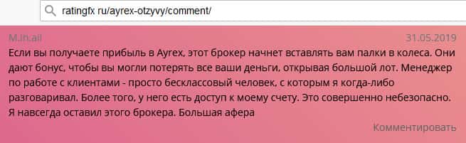 Как бы не маскировались жулики Ayrex, создавая английский сайт, а видно, что это чистый развод по-русски. На Западе за такое сажают в тюрьму. У менеджеров есть прямой доступ к счету клиента и он оттуда может взять столько денег, сколько ему захочется и исчезнуть. Впрочем, именно так жулики и поступают.