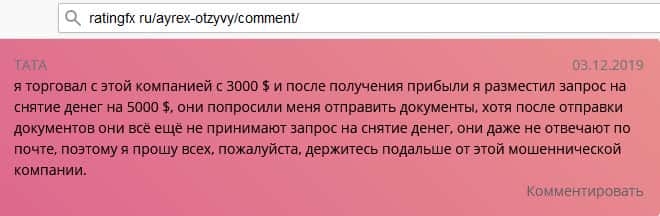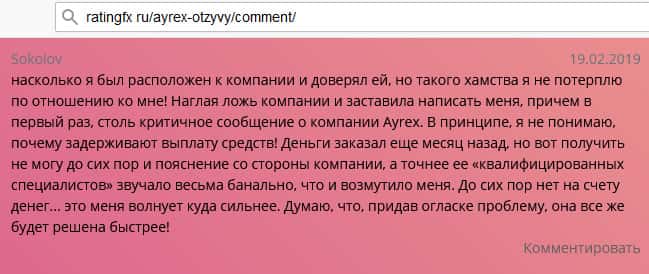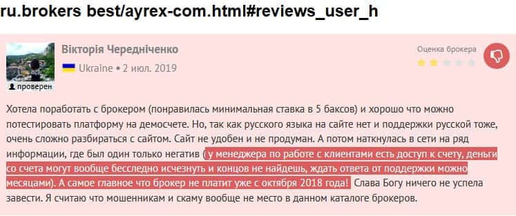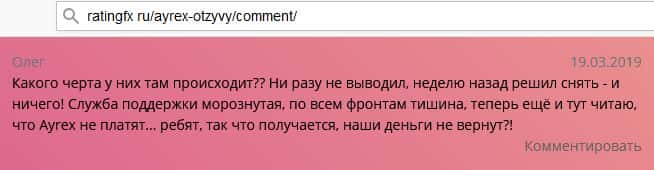 - Жулики Ayrex вставляют палки в колеса как только клиент начинает получать прибыль