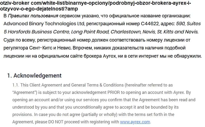 - Про клиентское соглашение мошеннической конторы Ayrex