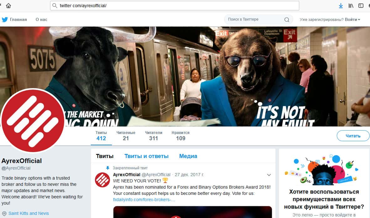 - группа мошенников в Twitter twitter com/ayrexofficial/
