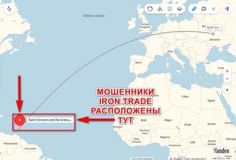 Чтобы было труднее добраться до офиса дилинговой кухни Айрон Трейд, аферисты забрели как можно дальше, а именно на острова Saint Vincent and the Grenadines, а это, на минуточку, около 9 000 километров от мест совершения своих преступных действий.
