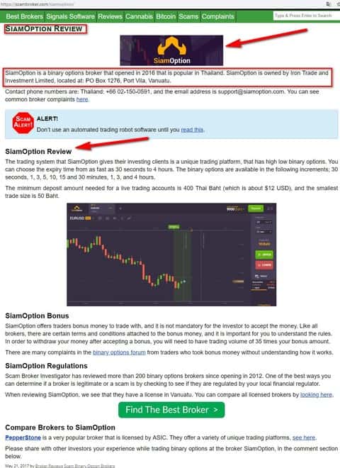 Но дальше еще интересней! Оказывается эта Iron Trade and Investment Limited имеет под собой еще одну бинарную кухню, которая по дизайну сайта уж очень похожа на брокера бинарных опционов Iron Trade. Ее название SiamOption, которая открылась в 2016 году и стала популярной в Таиланде. И теперь, согласно одной из статей, компания-владелец Iron Trade and Investment Limited расположена по адресу: PO Box 1276, Port Vila, Vanuatu. Вот так новости! И крайнего в этой схеме никогда не найдешь.