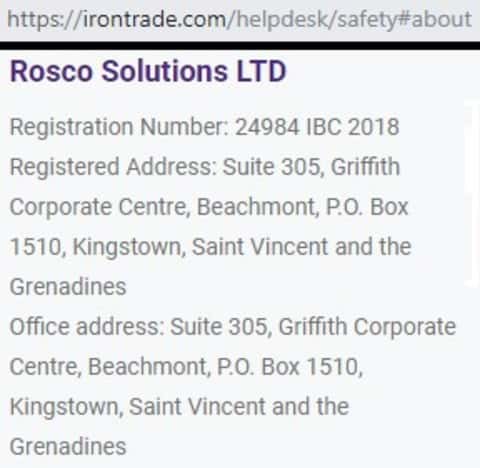 Мошенники Iron Trade принадлжат не только вышеописанной компании, есть еще одна оффшорная компания, которая называется Rosco Solutions LTD и информацию о ней вы можете увидеть ниже: