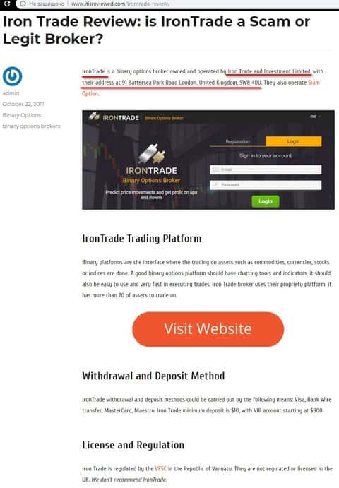 Бинарная контора Iron Trade не вызывает доверия у одного из интернет-ресурсов