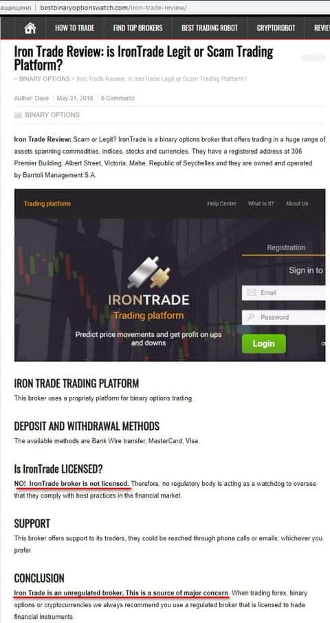 - Бинарная контора Iron Trade не вызывает доверия у одного из интернет-ресурсов