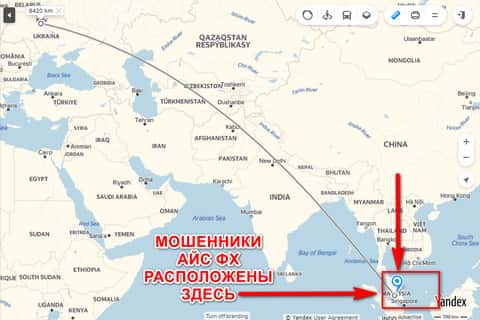 Как уже было сказано, брокерская кухня Айс ФХ, использует свое местоположение для безопасности своей мошеннической деятельности. Важно отметить, что крадет деньги она преимущественно у русскозычного населения. Размещены по адресу U0064, 3rd Floor, Jalan OKK Awang Besar, 87000 Labuan FT, Malaysia.