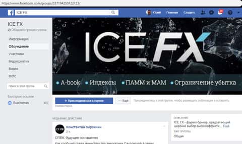 Брокерская контора Айс ФХ использует различные способы привлечения новых лохов в свое логово и поэтому они не прошли и мимо социальных сетей. Чтобы вы были подготовлены и случайно не попались на их удочку, мы по порядку представим некоторые страницы, где они более всего активны: