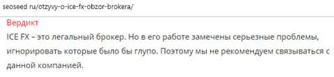 - Ресурс seoseed ru не рекомендует вкладывать деньги в контору Ice-FX